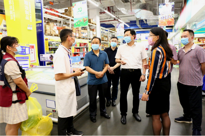 6月16日下午,株洲市市场监管局局长李余粮带队对麦德龙株洲商场店、天元区天纺农贸市场、徐记海鲜华晨国际店开展食品安全检查。