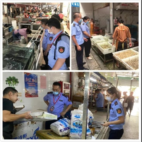寻乌县市场监管局出动执法人员86人次,检查农贸市场11个,商场超市33个、冷库4个,进口海鲜和牛羊肉经营户9户,餐饮单位68户,就地封存进口三文鱼15.3公斤、其他海鲜产品55公斤,协助寻乌县疾控中心对封存产品(含污水、砧板)抽检14批。暂未发现从北京新发地或新发地直营店采购肉类、海鲜原料的情况。