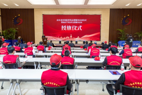 在疫情防控的关键时期,在播撒希望的美好季节, 4月26日上午,省市场监管局在山东省知识产权公共服务平台隆重举行“山东省市场监管局志愿服务启动仪式暨知识产权宣传志愿服务活动”,正式成立省市场监管局志愿服务队并进行授旗,同时,举行“2020中国山东新旧动能转换高价值专利培育大赛”暨签约仪式。省文明办副主任孙文利,省委省直机关工委副书记刘杰,省局党组书记、局长(省知识产权局局长)侯成君,省局党组副书记、副局长朱昆峰,省知识产权事业发展中心党委书记、主任于智勇出席活动,启动仪式由朱昆峰同志主持。省局志愿服务代表等共40人参加活动。