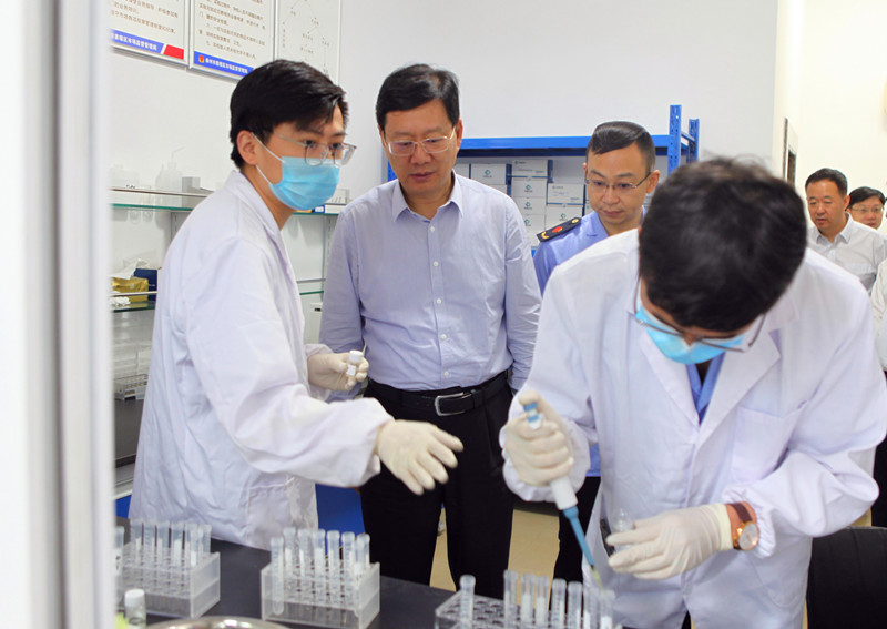 当前疫情反弹风险始终存在,朱勤虎局长十分关注防疫医疗物资保供情况。他来到泰州硕世生物科技公司,深入总装区、半成品区、成品区,详细了解核酸检测试剂盒的研发、生产、销售情况。他指出,硕世生物是第一批通过省局“绿色通道”获得国家药监局医疗器械注册证的企业,要严把质量关,加强全过程管理,不断提高诊断准确率;要针对疫情形势变化,加大对重点地区保供力度。
