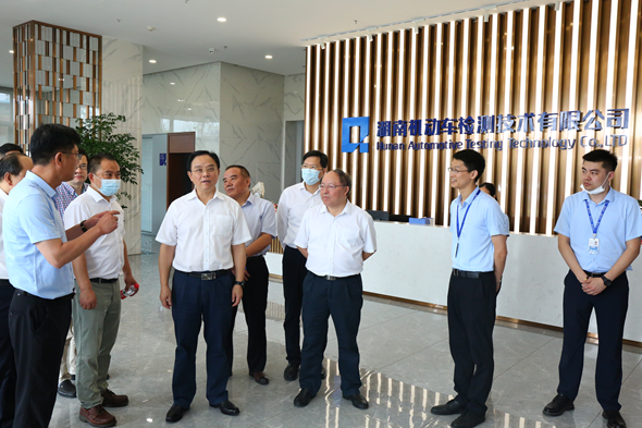 向曙光还来到湖南新能源机动车检测中心,参观了全国最大的EMC电磁兼容试验室,以及国际领先的整车静态试验室、全国最先进的“重型转鼓 环境模拟”试验室等。向曙光勉励该中心抢抓机遇,加强创新,完善检测能力,打造全国一流的新能源机动车检验检测机构;积极向市场监管总局汇报,争取“国家新能源汽车产品质量监督检测中心(湖南)”早日落户株洲,以便更好地服务全省新能源汽车产业发展。