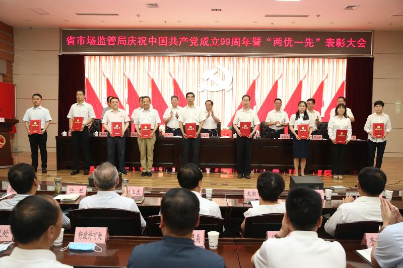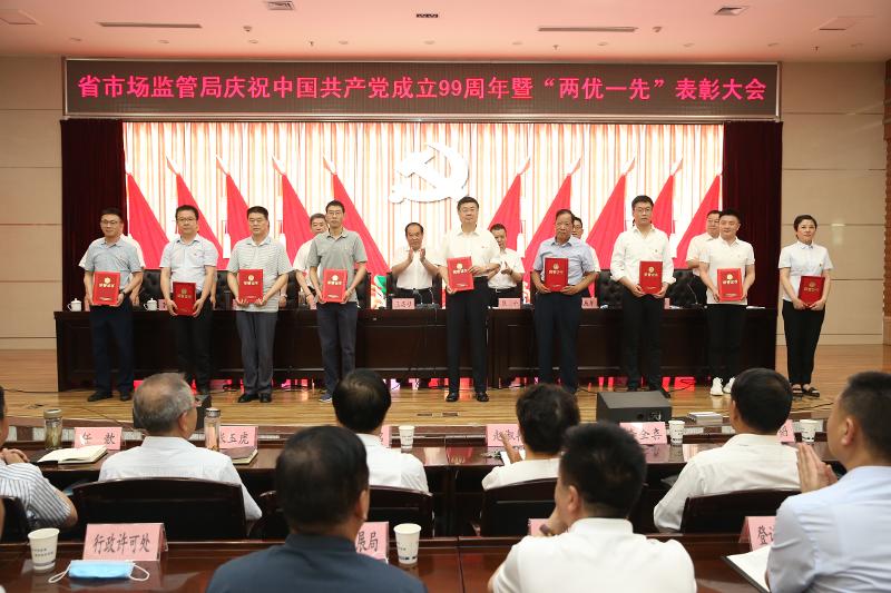 6月30日省局召开纪念建党99周年暨直属机关“两优一先”表彰大会回顾党的光辉历史弘扬党的优良传统表彰优秀共产党员、优秀党务工作者和先进基层党组织激励全局党员干部以初心使命为指引不断推动新时期全省市场监管事业再上新台阶。党组书记、局长王忠习出席会议并讲话同时为全体党员讲了一堂生动活泼的党课党组成员、副局长、直属机关党委书记孙乔玉主持会议。