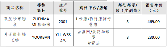2款样品起球性能较差2款样品色牢度不符合明示标准9款样品未能通过A类婴幼儿纺织产品标准4款样品纰裂程度较差11款样品接缝强力较差