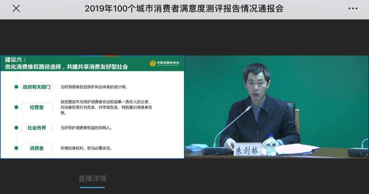 2020年3月12日,中国消费者协会在京召开新闻通报会,发布《2019年100个城市消费者满意度测评报告》。