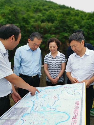 韩永生(左二)陪同周喜安副省长(右二)在铜陵市检查红星河东湖闸运行情况。