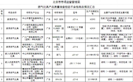 其中,商标为“新飞”的嵌入式家用燃气灶具存在性能、结构不合格的问题;商标为“好太太”的家用燃气灶具存在结构、标志包装不合格的问题;商标为“骆驼 CAMEL”的家用燃气灶具存在性能、结构不合格的问题。