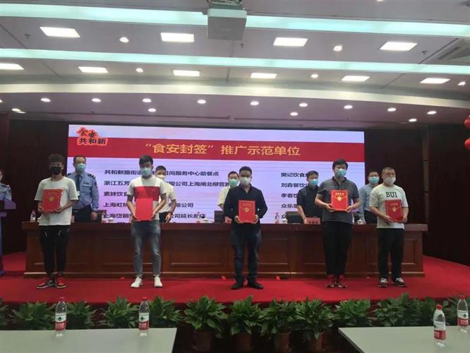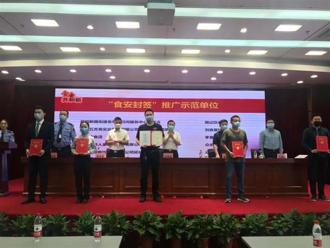 本次会议不仅是一次食品安全宣传活动,更是一次“食安封签”推行成果验收行动,出席的领导、企业以及居民群众们都是验收评委。经过综合考评,共和新路街道评出了10家“食安封签”推广示范单位。