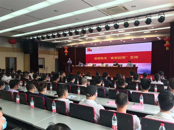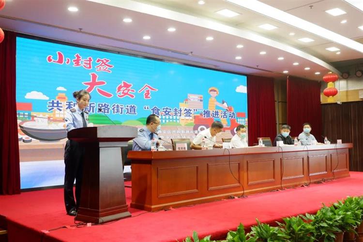 在观看“食安封签”宣传视频后,区市场监督管理局食品协调科科长许轶斌上台宣读有关“食安封签”文件,明确了封签使用时需要注意的各种规范。