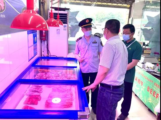 深入开展流通领域食品安全大检查,重点突出江杨三大批发市场、全区各农贸市场、专业冷冻冷藏库房、超市、便利店以及肉类和水产品使用量大的餐饮服务单位等经营者,重点检查生鲜、冷冻猪肉、牛肉、羊肉、鸡鸭肉等畜禽肉类,以及水产品及其制品等品种。截至目前,共检查农贸(批发)市场37户次、超市卖场29户次,餐饮单位497户次,指导食品经营单位落实疫情防控措施855户次。