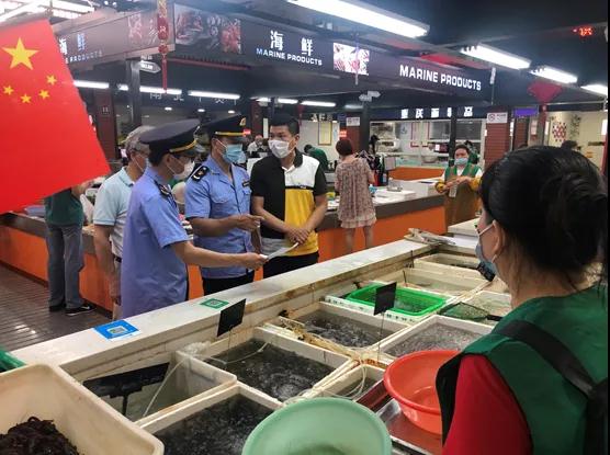 制定《关于继续做好市场经营场所疫情防控工作的工作提示》,要求市场落实每日进场人员的体温测量及日常消毒,确保空气流通良好、顾客保持安全距离,场内员工和经营户佩戴口罩等。每天对辖区内190家农贸市场和38个活禽交易点开展全覆盖检查,严禁加工经营“野味”食品,严查肉类等经营者主体资质和交易凭证。