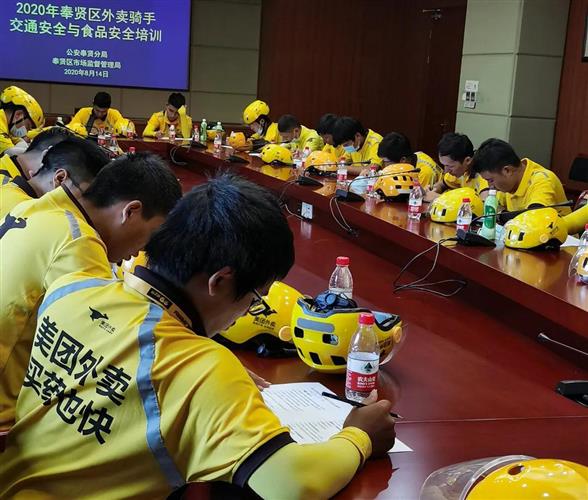 根据“食品安全社会共治战略合作备忘录”,经过区食药安办前期调研,由区市场监管局、公安奉贤分局共同组织,计划对我区外卖骑手开展统一培训考核。