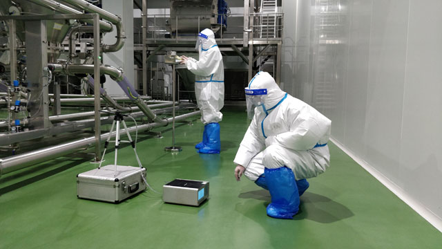 为助力疫情防控,支持疫情期间民生保供重点企业迅速生产,省食检院践行公开承诺,迅速抽调专业技术骨干成立民生保供应急检验组,主动上门为该企业的灌装间、内包材杀菌间、流化床间、干混间等14个新建生产车间共计2600平方米进行空气环境现场检测并及时出具检测报告。